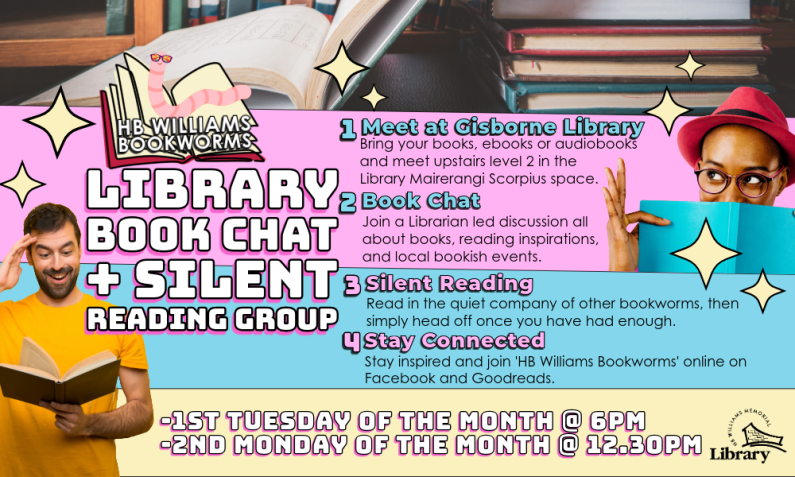Trying to scroll less and read more? Join the 'HB Williams Bookworms' book club community silent reading group here at Gisborne Library.